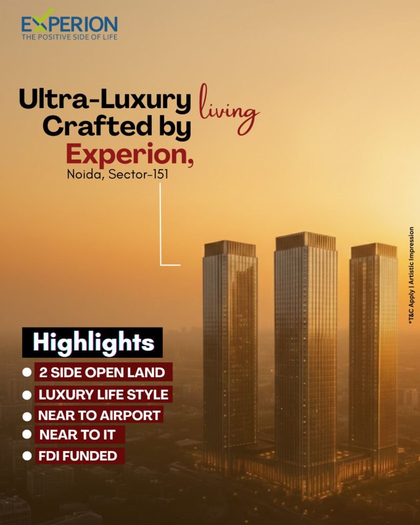 Experion Group is all set to redefine luxury in Sector 151, Noida with its upcoming ultra-luxury residential project spread across 5 acres of prime land. This pre-launch development will offer spacious 3BHK & 4BHK premium residences with servant and study configurations, starting from 2200 sq.ft to 3500 sq.ft. With a tentative BSP of ₹16,000–18,000, the project promises unmatched elegance and world-class living.